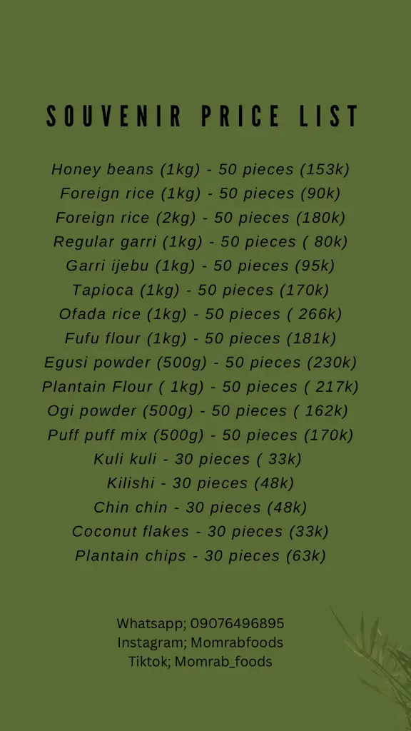 To view more on food packages for gifts and souvenirs, check our social media handles. we can always work according to your taste and budget.